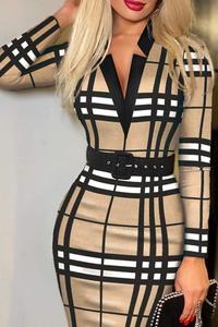 Plaid Print Long Sleeve Belted Work Dress