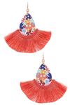 Description: Acrylic floral teardrop cotton tassel drop earrings